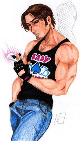 did you draw it too? Im very impressed with the line art the coloring is very nice as well. the fill lighting from the right side is nice. your key lighting could use a little more secondary medium colors to help pop out some of the shapes and give it a bit of a modeled look. but I really do like this piece. great job keep it up.