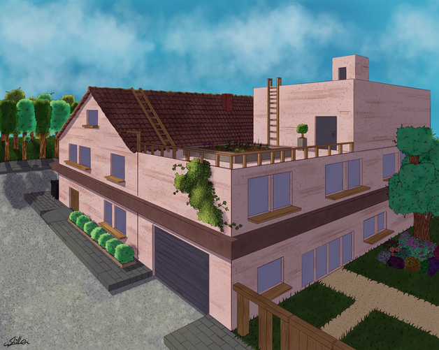 Budynek wygląda naprawdę nieźle. Widać też, że skupiłaś się bardziej na perspektywie. Z tym, że jeśli o perspektywę chodzi to jedynie chmurka po lewej mi się w nią nie wpasowuje. Powinna być mniejsza i bardziej rozmyta bo znajduje się dalej. Poza tym rysunek jest naprawdę ładny
