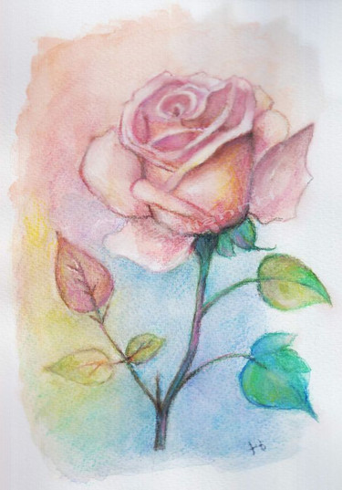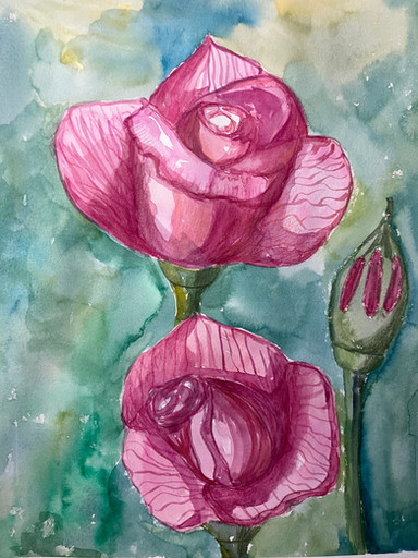 #beautiful #beauty #blue #exercise #flower #nature #paint #picture #pink #rose #watercolors