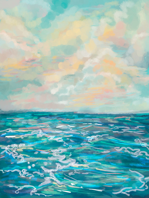 Rysuj więcej oceanu. Jak boisz się rysować bliższe obiekty, rysuj widokówki takie jak ta.