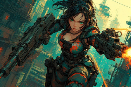#warrior #scifi #battle #wallpaper #gun #ai #cinematic #sciencefiction #twintails #ai_art #ai_generated #aiartwork #ai_generated_art #ai_artwork