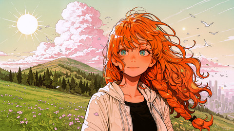 #anime #ai #original_character #anime_girl #digital_art #sunset_field #soft_light #fluffy_clouds #ai_art #ai_generated #aiartwork #ai_generated_art #ai_artwork #dreamy_atmosphere #emotional_moment #melancholic_aesthetic #poetic_vibe
