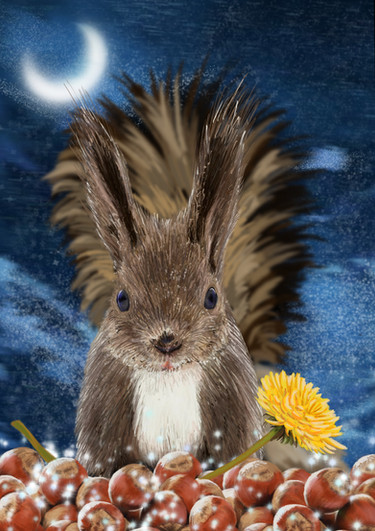 Finally, it's done! The "Fantasy Squirrel". Or something like that xDI love squirrels more than anything, and I also had a bit of fantasy, and that's what came out of it. A squirrel, which can be warmed by a lantern at night - and observes the starry sky.