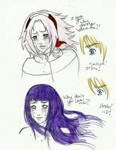 good idea to put Sakura crying over her love due to him being evil and stuff while Hinata is just worried and calm due to naurto being kind and brave. Plus, Hinata's dress is prettier and I know she'll get naruto in the end.
