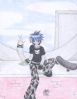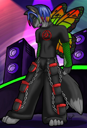 blue hair, awesome pants, raver theme... Nice character, Nice pic!