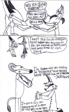 Dear Butch Hartman,I hope that, by now, you’ve noticed that there seems to be a spilt in the Danny Phantom community. On one side you have the people who are convinced that Danny and Sam might be the most romantic couple since Professor Harold Hill and Marion the Liberian, and on the other side you have those who want Danny and Sam to reenact Romeo and Juliet right up to the part where Juliet kills herself. I have to say I am surprised by the reaction. I’ve never seen fans react like this, and I‘ve never seen a split in the fan community like this.