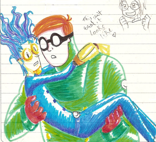 This was a comic I drew one Thursday after a girl in my Choir who I had never met, never spoken to, and was never even seated near (she was an alto and I was a soprano) came up and asked if I’d sign her yearbook. I didn’t even know her name until I saw it written in there. I just wrote some generic “Have a great summer” message and after she read it, I still can’t believe this, she read the inscription aloud in the same incredulous way one might read a statement about how donuts are a health food and then, right in front of me but not directly to me, mind you, complained loudly about how I didn’t write anything about her and what she was like and what I liked about her. It was confusing the heck out of me, so I did what I do when something truly ridiculous happens; I draw a comic about it.My stupid scanner cut off Hollywood’s full name and I messed up on Chelsey the wolf girl’s feet. (Those sketchbooks don’t take white out very well). Jock the big horned sheep’s expression is odd and Roxy’s waist is way too small. And now that I look at it again it’s not that funny (not as funny as what led up to it anyway).