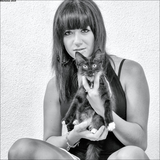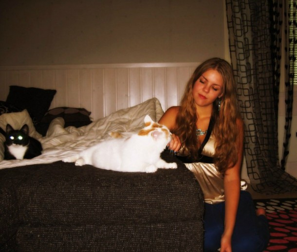 i love the "home-y" look to this one. the misc stuff in the bg, snuggling with the cute kitty, and the tube top (i love those) all bring it together to make a great pic.