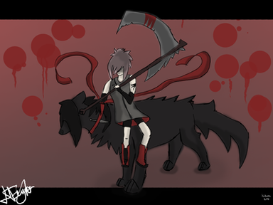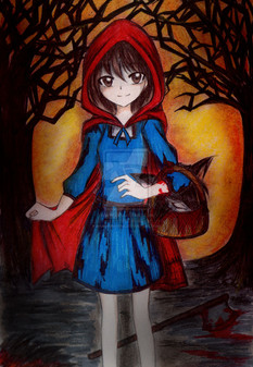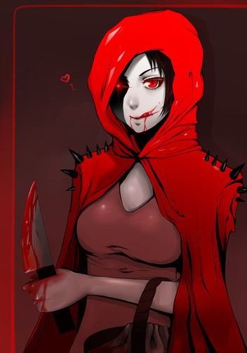 I JUST noticed the red moon, kinda funny I guess. Cool dark Red riding hood.