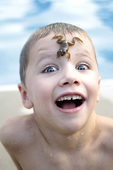 A photo manipulation featuring a boy taking a cold shower, incorporating a fake high dynamic range (HDR) image processing technique.Created in Photoshop using various filters and photo stock.