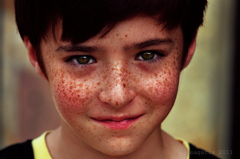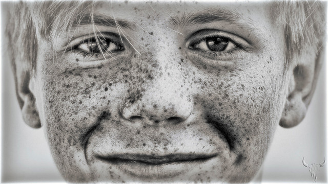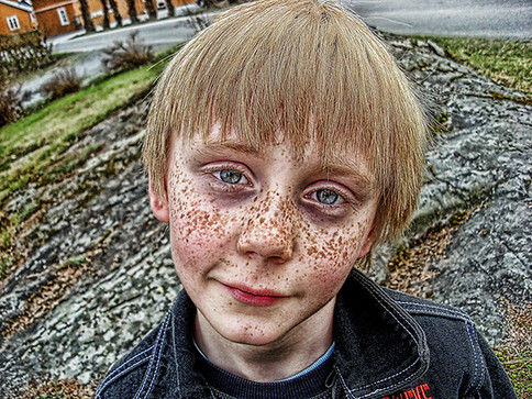Nothing apart from his several dozen freckles, although I've applied a HDR filter to the original photo, which creates a painted look to the image