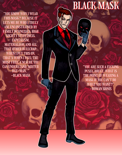 This just in: The Leader of the so called "False Face Society" and one of Gotham's most powerful crime bosses, Roman Sionis, aka: The Black Mask, has been sentenced to undergo treatment at Arkham Asylum for the Criminally Insane.Character Art by phil-cho