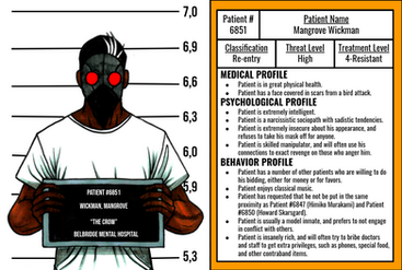 "Patient is afflicted with involuntary vesperthropy, or the ability to change into a human-bat hybrid due to stress." So basically, he's like the Hulk, but in the form of a giant bat.