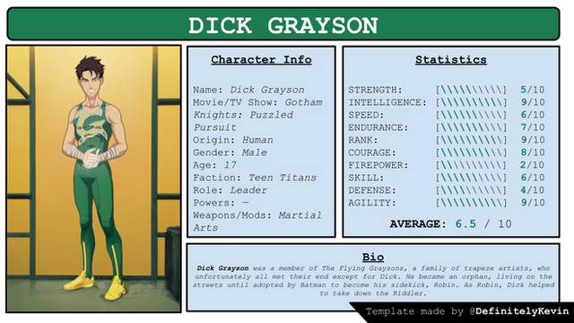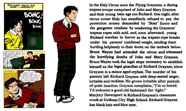 Good call on listing the Grayson/Wayne relationship as "surrogate father or surrogate brother", what with the New 52 preferring the latter, whilst "old school" leans towards the former. I know, I'm a nerd. And I'm sorry.