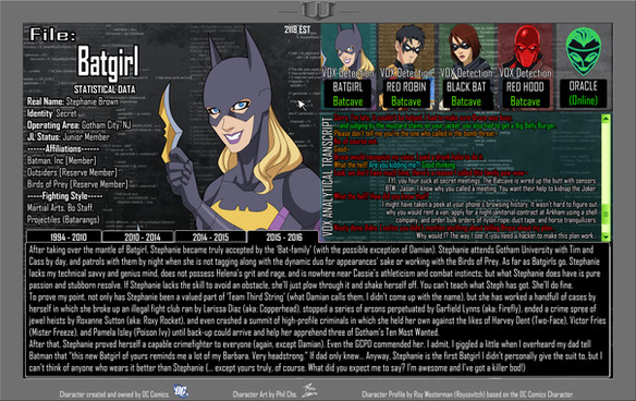 I am guessing the sibling rivalry extends to all the bat family when viewing team arrow, for some reason that amuses me more than the last time you posted this. As always I am still impressed, the Vox chat makes me laugh as well so good show Roy