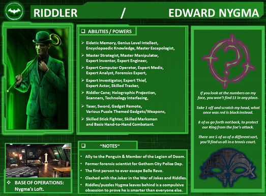 Check out their "Locked Up" profiles in my Rogues of Arkham folder