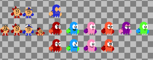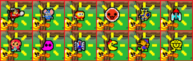 Fighter (Galaga '88) "P" (Pole Position), Terror Mask (Splatterhouse), Fairy (Pac-Land)