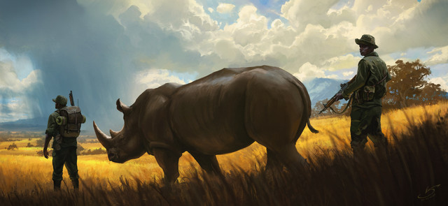 #acacia #african #animals #conceptart #digitalart #digitalpainting #environment #oasis #painting #rhino #savannah #warriors