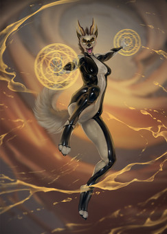 #anthro #canine #digitalart #digitalpainting #female #furry #gloves #hooves #horse #latex #magic #paws #rubber #stockings #suit #wizard #art