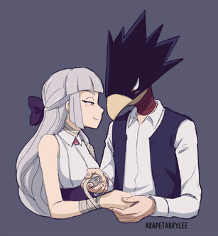 Look at them!!! She is like so flustered so she tries to change the subject thinking Tokoyami would think she is werid so she is like blabbing and he is blushing like "just please take the apple Cosette pleeeaaaase."