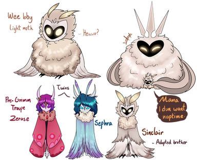 Well- there's Eclair with being part fish QvQ and my male moths appear almost owl-like. Rozen on the other hand looks like a raven if he takes his mask off.