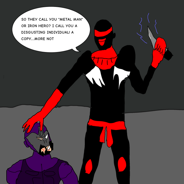 OK, if anyone gets offended by this, I'm really sorry. I was checking some videos of Kinnikuman on Youtube.com, and I found one named "Kinnikuman the Doubleman" which was in Spanish, so I do not understand what it was all about, but I found a weird scene, so I decided to just add some stuff for humor. It ended up making Warsman look like a nut-grabbing pervert and Brocken Jr like a typical teenage guy (in a military outfit) offended by Warsman's regards on his package. Poor Kinnikuman is embarrassed by the whole thing.Just in case it is hard to read it says: