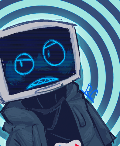 #artwork #digitalpainting #drawing #falling #oc #binary_code #rozucore #static_overlay #digitalart #originalcharacter #robot #object_head #tv_head #maleoccharacter #paint_tool_sai_2