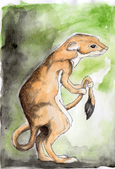 My depiction of a Mulefa from Phillip Pullman's "The Amber Spyglass". I loved how unique these guys were in design but had a horrible time figuring out how to translate that design to paper. I think it ended up pretty well. Most pictures I've seen of them always go very elephantine, while I feel like the reference to the size and coloration of deer/antelope was mentioned several times in the book. Therefore, I still held onto the grey but added in some nice antelope browns and blacks and stole marking from antelope and tapirs.Watercolor and Ink