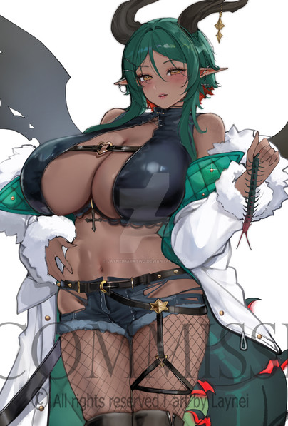 #catgirl #originalcharacter #bellybutton #blackjacket #cool #fishnetstockings #illustration #bikiniarmor #sexybeautiful
