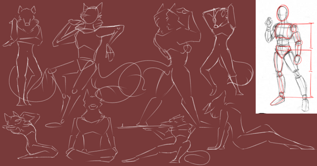Nice sketches! The poses and proportions are awesome! I also like the wink-smile on the top right one.