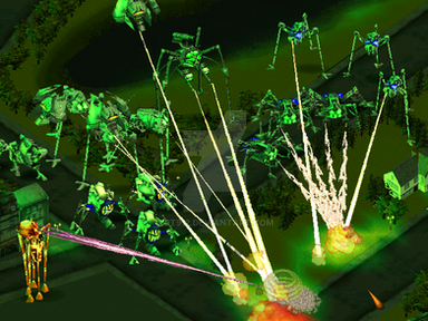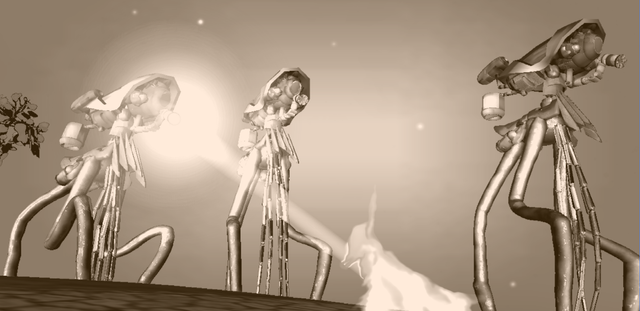 During a siege on Sector 15, a Martian Fighting Machine, Electric Machine and Bombarding Machine unit are attacking an enemy Command Post. A nearby Scanning Machine has done its part by using its Infiltration Skill to give the Martians a temporal view on the nearest sector.Related content