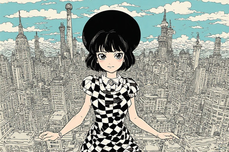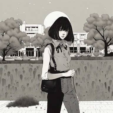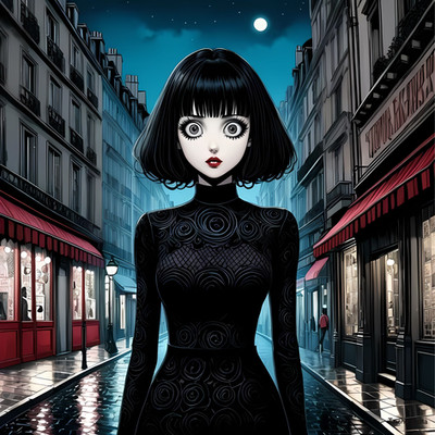 #digitalart #cartoon #digitalpainting #drama #dress #fanart #characterdesign #portrait #black #building #city #day #hair #lines #noir #outdoors #power #road #scenery #shadow #sky #solo #street #sunlight #viewer #window #1girl #looking
