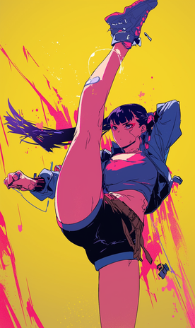 #anime #aesthetic #background #backside #character #digital #dynamic #female #minimalist #painting #pose #racer #shorts #skin #sportswear #sporty #style #sunkissed #tight #view #wet #rtechcl