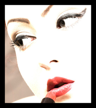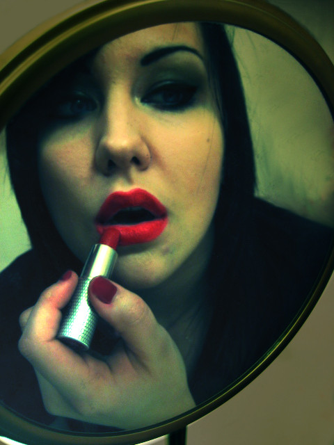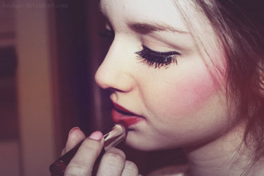 nice picture, but her lip stick is in the wrong place.. in my opinion i woulda liked the picture so much more if she was in the process of aplying the lipstick to her lips..