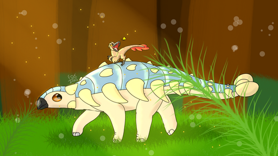Inspired by the recent study of Pinacosaurus's amazing ossified larynx, I just had to make this two frens. With chirps and churps it builds a conversation and before you know it you are singing with a Gobipteryx!Now, ofc that Pinaco having a similar larynx to birds doesn't mean that it or even other dinosaurs necessarily chirped like birds, however... it really does for a very neat duo!