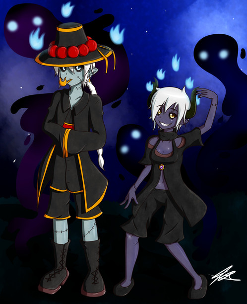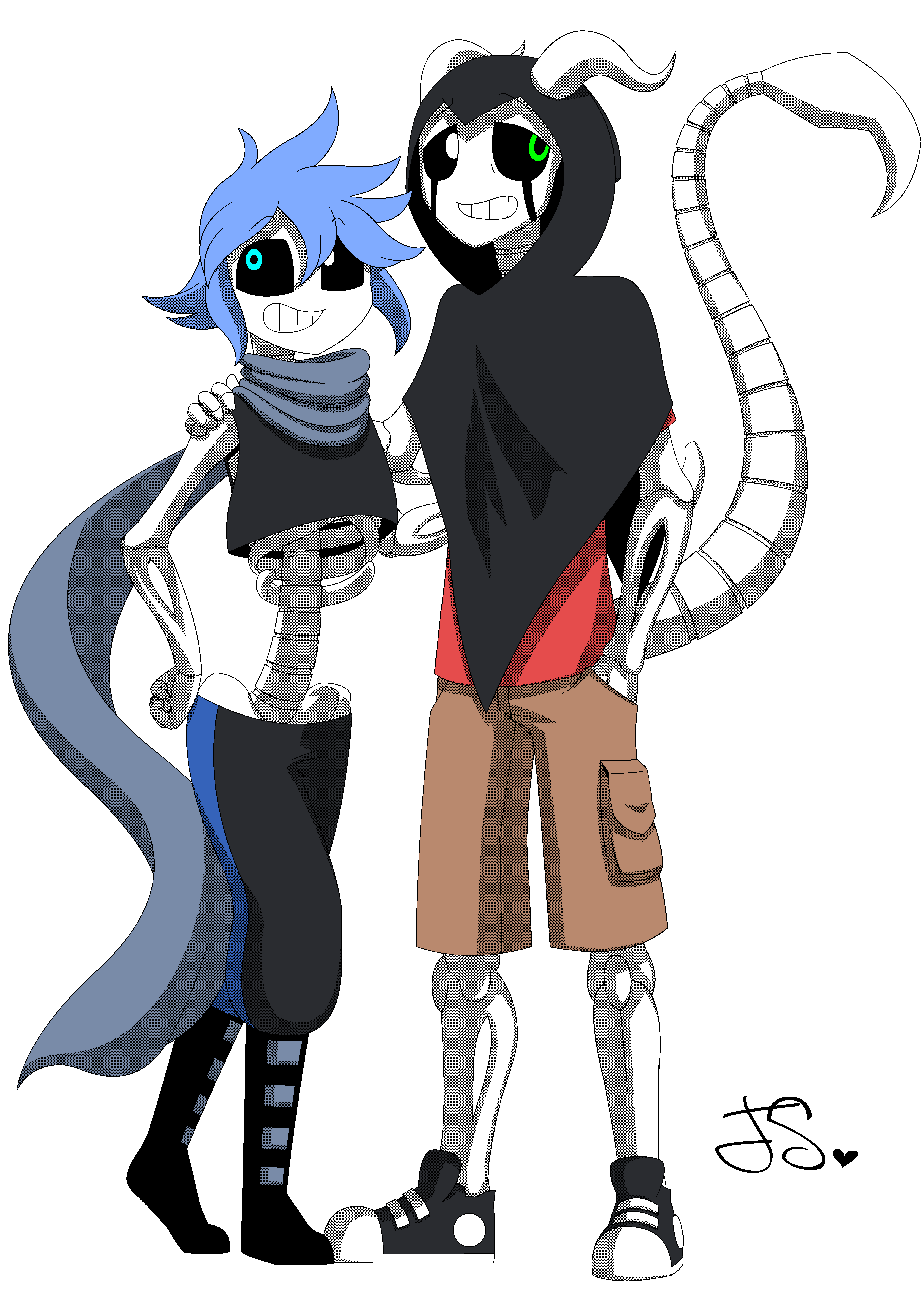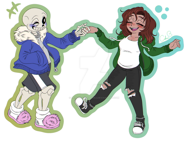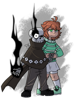 Commission for me, done by GolzyDee of my mascot/self insert and my Gaster Industries AU Sans.This is one of the two images I commissioned recently. I totally forgot that my mascot has long hair like I used to have. XD I may need to adjust that. Either way, I like this take.