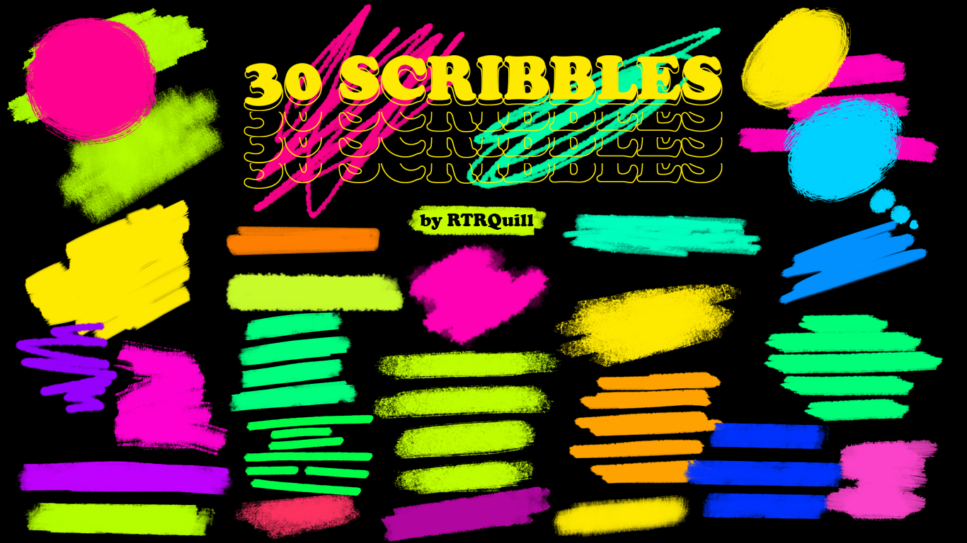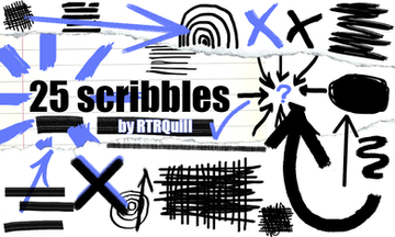 Pack containing 30 scribbles30 PNG random scribbles.