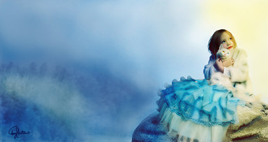 Absolutely gorgeous. The detail on her hat and the cat's fur is just lovely! <3