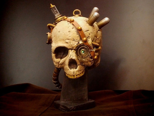 I made my own little Chaly. Chaly is a winged skull that is found on various album covers by the thrash metal band Overkill.The skull is just a small Halloween ornament. The wings are 4 pieces of paper glued to each other on a piece of wire that goes through the skull. Stand is painted wood and the barbed wire is home-made out of a few pieces of steel-wire. (I cut my hand 3 times during the hour it took to make it). The name plate is made with a CO2 laser that I have access to at work.