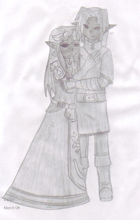 Eh I really don't like this too much. I drew it for a friend at school and thought I'd color it but after a while I realized I hated it so I'm not going to finish it. Anyways it is a what if pic. My friend wanted Link/Zeldaness so I drew him a sorta wedding/they're married type thing. There's a ring on Zelda's hand if you can't see it. I imagine that after marrying the princess Link would be crowned a prince? or something of the sort. Whatever...oh and if you don't like the pairing well too bad because I do.