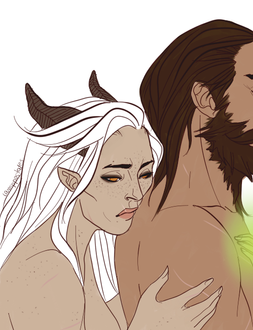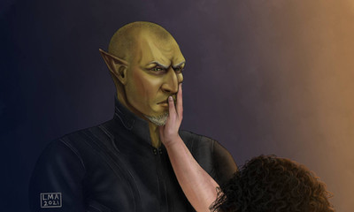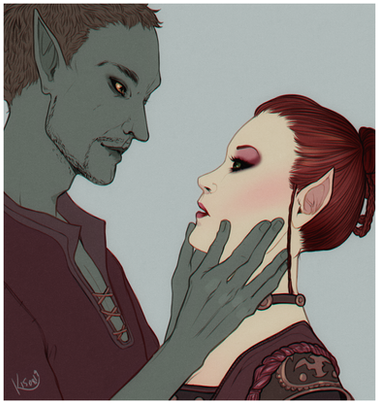 Inspired by geeky-jez's fanfic "Tranquility". [geeky-jez.tumblr.com/post/1127β¦Her beautiful inquisitor Isii Lavellan and Solas.