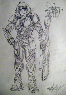 Drawn in pencil, then inked in, then scanned. I colored this on Future Paint, which is a Mac program almost the same as MS Paint.I did some experimental shading on this image and pulled it off with the help of some anime AVI's on my desktop, and I think I've gotten a lot better on it than I use to be.