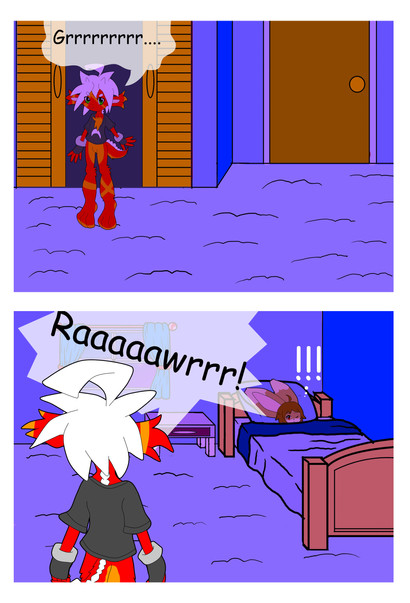 After hearing Mikasa crying in pain he raises to the room and kicks the door open not bothering to see if it was unlocked or not. As he gets in her sees her passed out on the ground with a shiny red egg in between her arms. 'So that's why she was acting strange lately', he though as he held her on her lap after sitting down.Later when she woke up she saw the handle to the door missing from where he broke and and she stared at him. "The door was unlocked...."