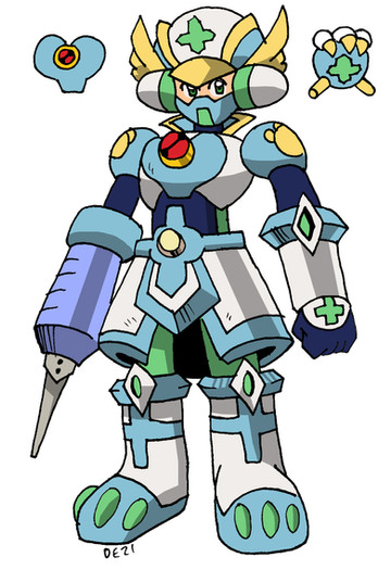 New ref for my Megaman x fancharacter!Deuce is a custom built maverick hunter with a separate AI in his arms- the AI is there to help him control his complex weaponry system...basically two big guns with a bunch of different forms of ammunition.