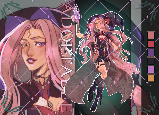 #characterdesign #adoptable #originalcharacter #adoptablesopen #fantasycharacter #characterconcept #adoptableauction #witch #elf #magic #dnd #anime #referencesheet #rpg #magicalgirl #boobs #dressdesign #adoptadoptable