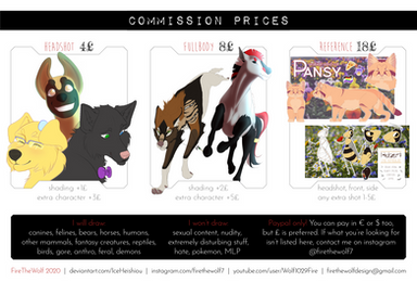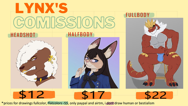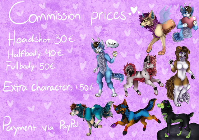 These are my starting prices but feel free to contact me if you want something else like telegram stickers and such!Check out my gallery for other examples of my art !