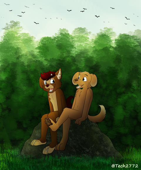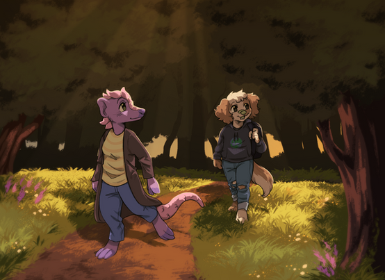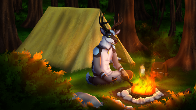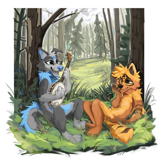 A commission for dingojake on instagram of his fursona hanging out in the forest!Commission Info: rubybugart.wixsite.com/rubybug