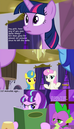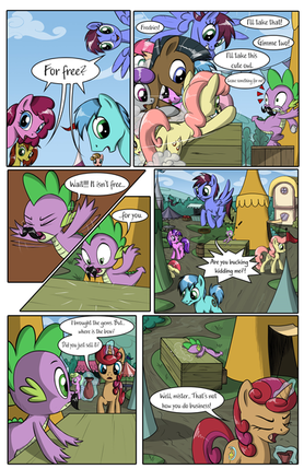 She knows to sell the cookies before the filly scouts start selling their cookies. Papa Storm helped her build her stall. She got to help as well, which is why the sign is crooked. Papa just can't say no to his little stormy. They let her set her prices, but stepped in when she tried to change 12 bits for her cookies, so she settled for two dollars. Still cheaper than those filly scouts.