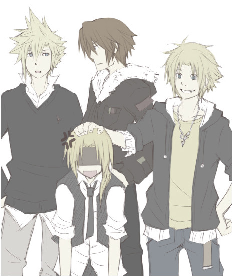 Characters: Riku from KHII, and Kadaj, Yazoo, and Loz from the Final Fantasy VII: Advent Children movieA small, small doodle. A silly idea that popped into my head today. What if they were siblings?