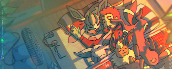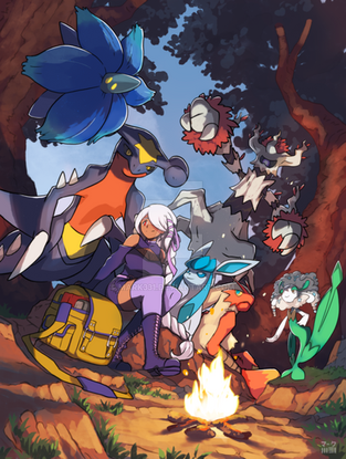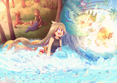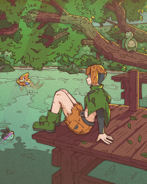 Such a relaxing scene! The colors and imagery are so soothing. Usually pokemon art is all about battles and such, so this is a nice change of pace!